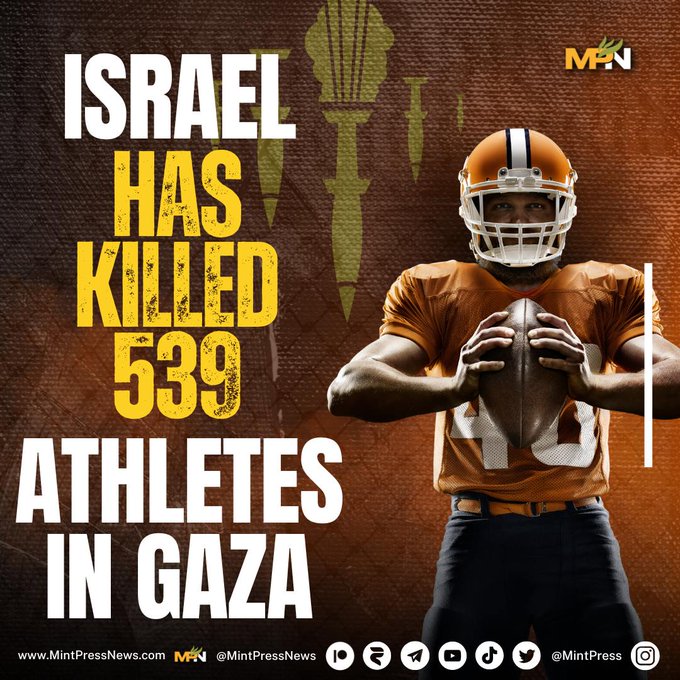 Israël heeft minstens 539 Palestijnse atleten gedood in Gaza.
