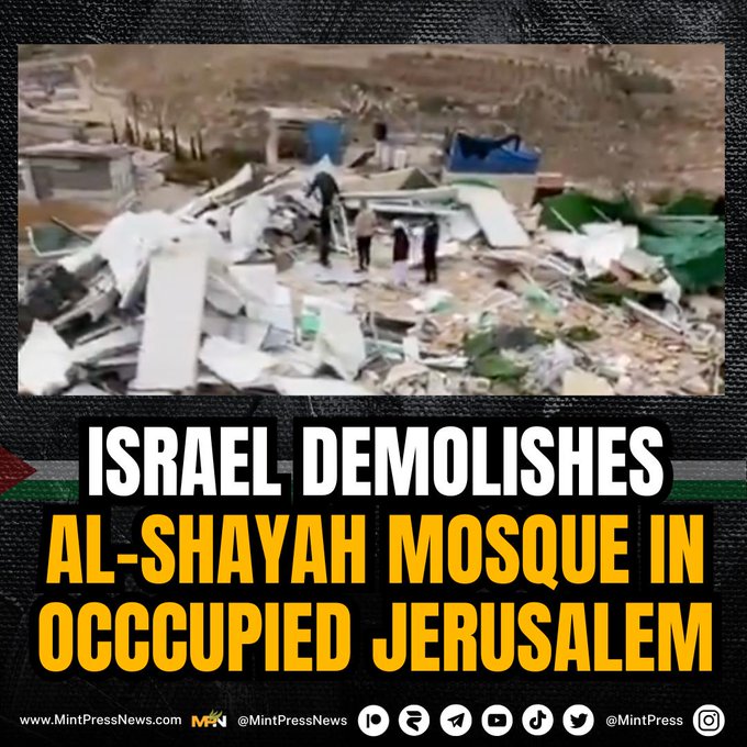 Onder het voorwendsel van bouwen zonder vergunning heeft Israël de al-Shayah-moskee gesloopt, gelegen in Oost-Jeruzalem, waar Palestijnen dagelijks worden geconfronteerd met de dreiging van sloop en ontheemding van hun huis.