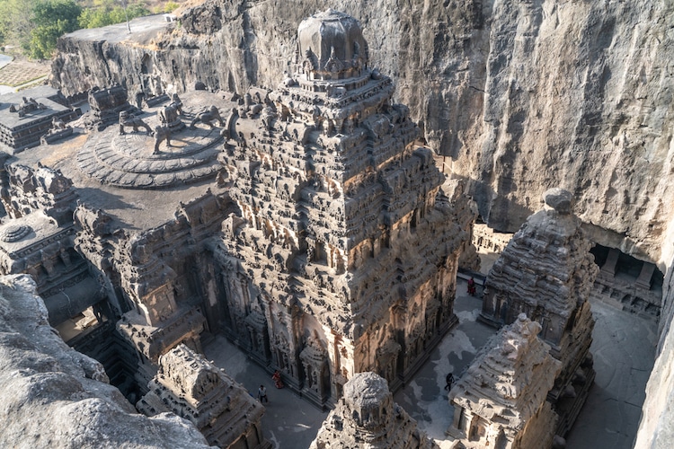 De ware definitie van ontzagwekkend — de Kailasa tempel in Maharashta, India, is volledig uit één stuk rots gehouwen en is drie verdiepingen hoog. Voor een echt gevoel van schaal: het is ongeveer twee keer zo groot als het Parthenon in Athene.