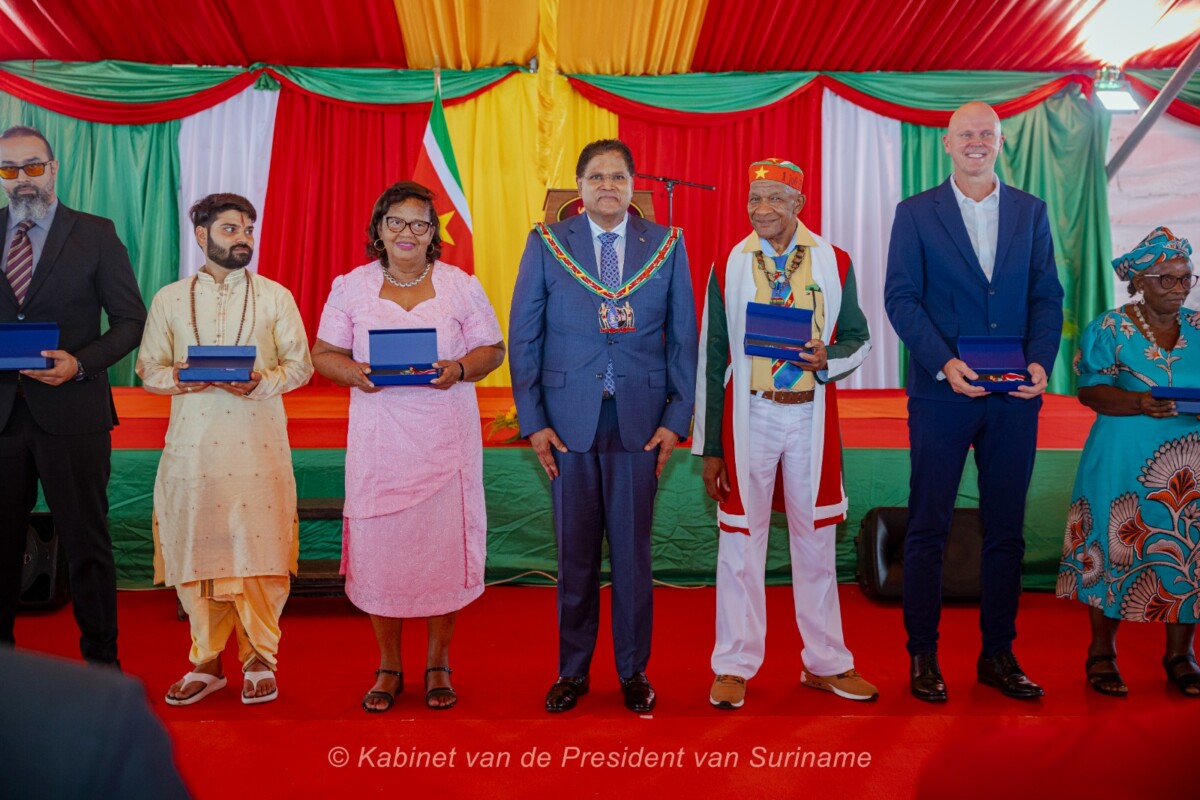 President Santokhi benadrukte de rol van de decorandi in het bevorderen van Suriname op geestelijk, sociaal en maatschappelijk vlak.