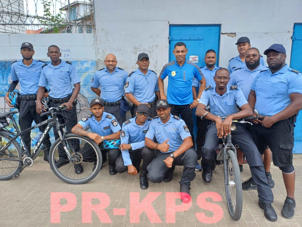 Hierna ging de korpschef met de Bikers fietsend door de binnenstad van Paramaribo. Bij de Centrale Markt maakte de hoofdcommissaris een tussenstop waar hij samen met marktmeester Sergio Anoesa en enkele bestuursleden door de verschillende ingangen van de markt heeft gelopen om te kijken hoe de veiligheid en de ordehandhaving onder de markt verlopen.