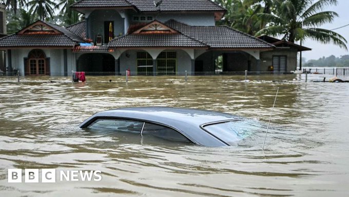 Uitdijende overstromingen, veroorzaakt door hevige regenval, hebben minimaal 12 doden geëist in Maleisië en Thailand, zeggen officials. Noord-Maleisië heeft meer dan 122.000 ontheemden geteld, terwijl 13.000 inwoners in Zuid-Thailand hun huizen moesten verlaten. Hulpdiensten werken onvermoeibaar om gestrande bewoners te redden; tijdelijke opvangcentra worden ingericht. Dramatische beelden tonen auto’s en huizen onder water; een video laat zien hoe een baby uit een overstroomd huis wordt gered in Thailand. In Maleisië kampen vooral Kelantan en acht andere staten met overstromingen. De Maleisische regering heeft noodmaatregelen getroffen, terwijl beide landen waarschuwen voor voortdurende moessonregens.