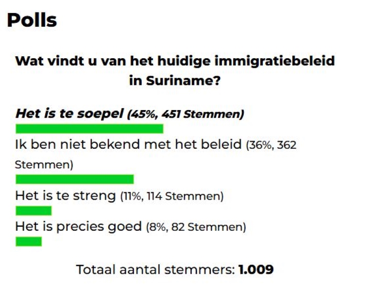 Recent voerde Dagblad Suriname een webpeiling uit om de publieke opinie over het huidige immigratiebeleid van Suriname te peilen. De resultaten bieden een interessante kijk op hoe de bevolking tegen de huidige maatregelen aankijkt.
