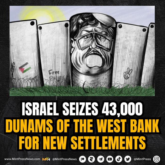 Israël heeft 43.000 dunam land van de Westelijke Jordaanoever in beslag genomen om nieuwe nederzettingsuitbreidingen mogelijk te maken. Deze stap komt terwijl wordt verwacht dat Israël binnenkort formeel grote delen van het bezette gebied zal annexeren, wat de bezorgdheid over annexatie vergroot.