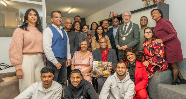 Het echtpaar Khemai-Badeloe heeft donderdagochtend bezoek gekregen van Victor Molkenboer. De burgemeester van Woerden feliciteerde het echtpaar uit Woerden met hun diamanten huwelijk.