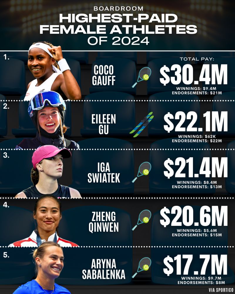 Coco Gauff is de derde vrouwelijke atleet in de geschiedenis — na Serena Williams en Naomi Osaka — die $ 30 miljoen aan jaarlijkse inkomsten bereikt.