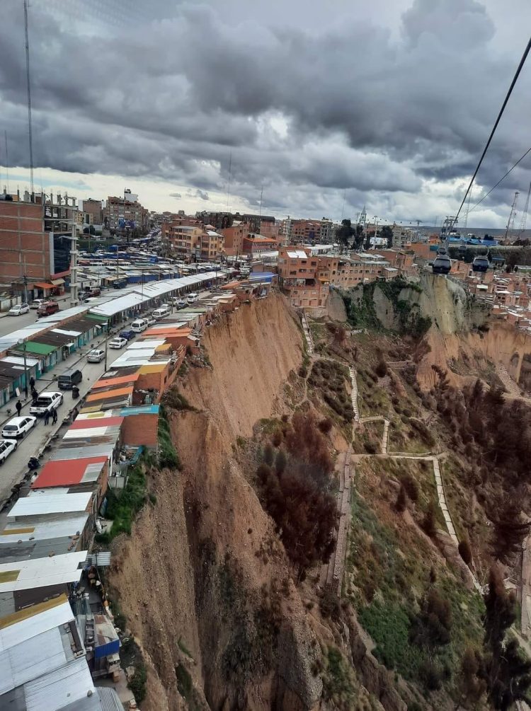 In El Alto, Bolivia, staan honderden gebouwen bekend als ‘zelfmoordhuizen’ vanwege hun gevaarlijke ligging op de rand van een steile klif, die vatbaar is voor aardverschuivingen.