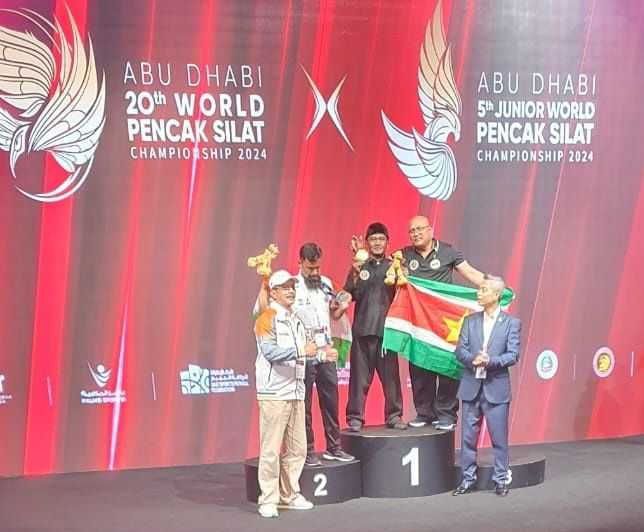 De Surinaamse Pencak Silat Associatie (SPSA) viert een gouden overwinning op het 20e Wereldkampioenschap Pencak Silat in Abu Dhabi, van 17 tot 24 december.
