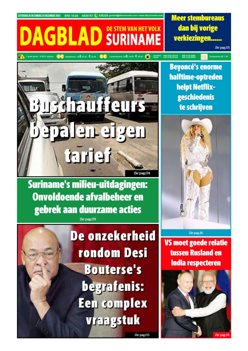 Dagblad Suriname, zaterdag 28 december 2024 Geplaatst op december 28, 2024december 28, 2024 Bericht navigatie VorigeDrugsvliegtuig neergestort in Nickerierivier in Stondansi-vallen gebiedVolgendeVS moet goede relatie tussen Rusland en India respecteren