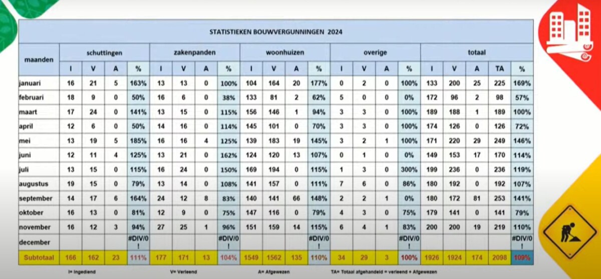 Met een groei van meer dan 100 procent in bouwvergunningen tot en met november, blijkt dat zelfs de drastische verhoging van de bouwheffingen in januari dit jaar geen negatieve invloed had op het aantal aanvragen. Opvallend genoeg werden nog vergunningen van 2023 in 2024 afgehandeld, wat bijdroeg aan de piek.