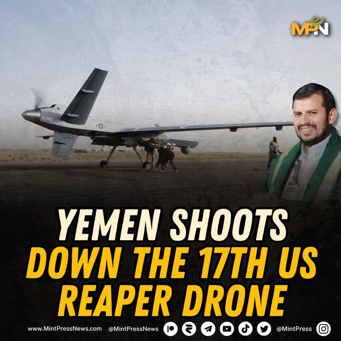 Jemen schiet opnieuw een Amerikaanse MQ-9 drone neer Geplaatst op december 31, 2024december 31, 2024 Dit is de 17e Reaper Drone die door de Jemenitische luchtverdediging is neergeschoten sinds het begin van de oorlog in Gaza. Bericht navigatie VorigeNPR verwijst naar Hayat Tahrir Al-Sham leider, Abu Mohammed Al-Jolani, als Syrische presidentVolgendeUltra-orthodoxe joden protesteren in Jeruzalem en houden de Palestijnse vlag omhoog