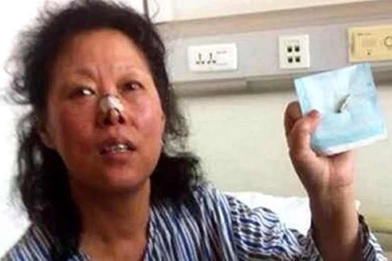 De 62-jarige Zhao, een Chinese vrouw, had jarenlang last van chronische rhinitis, hoofdpijn en ademhalingsproblemen. Een röntgenfoto toonde een kogel in de buurt van haar neusgat. Artsen van het First Hospital of China Medical University, in de noordoostelijke Chinese provincie Liaoning, ontdekten