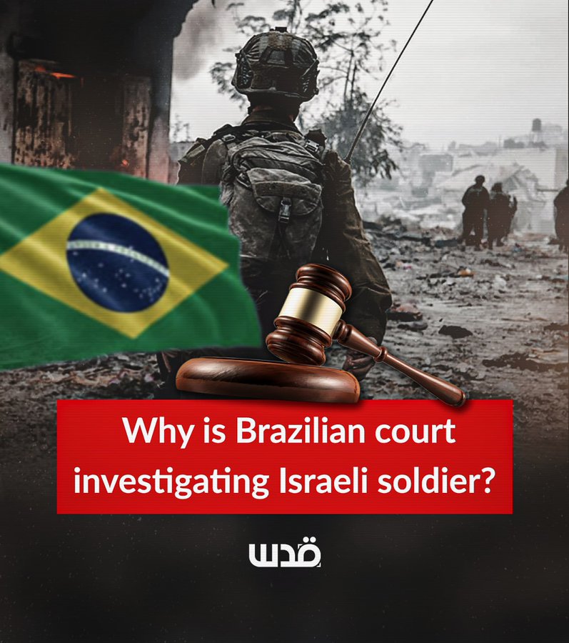Een Braziliaanse rechtbank heeft opdracht gegeven voor de arrestatie van een Israëlische soldaat op toeristische vakantie in Brazilië, beschuldigd van oorlogsmisdaden in Gaza. Bewijs tegen hem omvat video’s en foto’s die zijn betrokkenheid bij de vernietiging van wijken tonen. De groep “Imma Arah” heeft de Israëlische premier verzocht soldaten te beschermen tegen juridische vervolging door internationale rechtbanken.