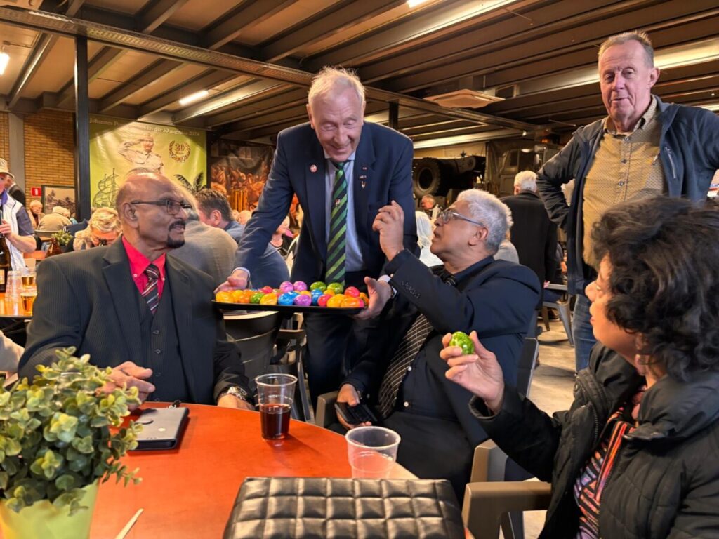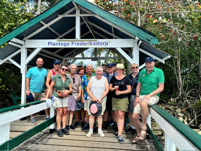 Zaterdag 4 januari 2024 was de nieuwjaarsreceptie in het Tris-museum. De zaal was vol. Prachtig om te zien hoe de Trissers genoten van het samenzijn en het ophalen van o.a. de avonturen in Suriname. De gesprekken gingen ook over de jaarlijkse TRIS- reizen naar Suriname en hoe intens zij van dit prachtige land hebben genoten en nog steeds genieten (zie foto). Het Surinaamse volkslied werd door de heer Andre van Lierop prachtig gezongen ( zowel in het Nederlands als in Sranan Tongo). De (Surinaamse) Nederlanders in de zaal zongen mee. Dan voel je ook de band, die de Nederlanders en de Surinamers met elkaar hebben.