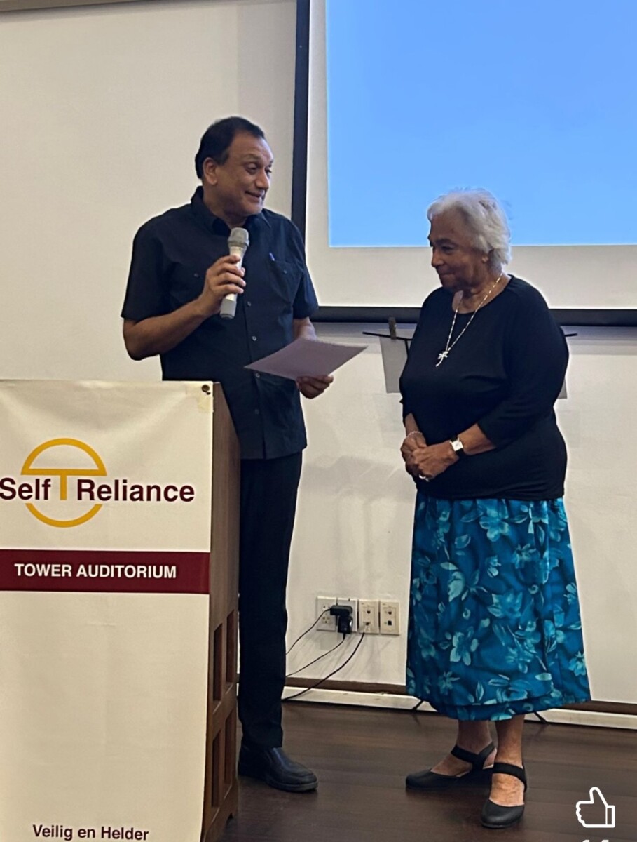 Het bestuur prijst Mc Leod-Ferrier om haar publicaties en inspanningen die de Surinaamse koloniale geschiedenis tastbaar maken.