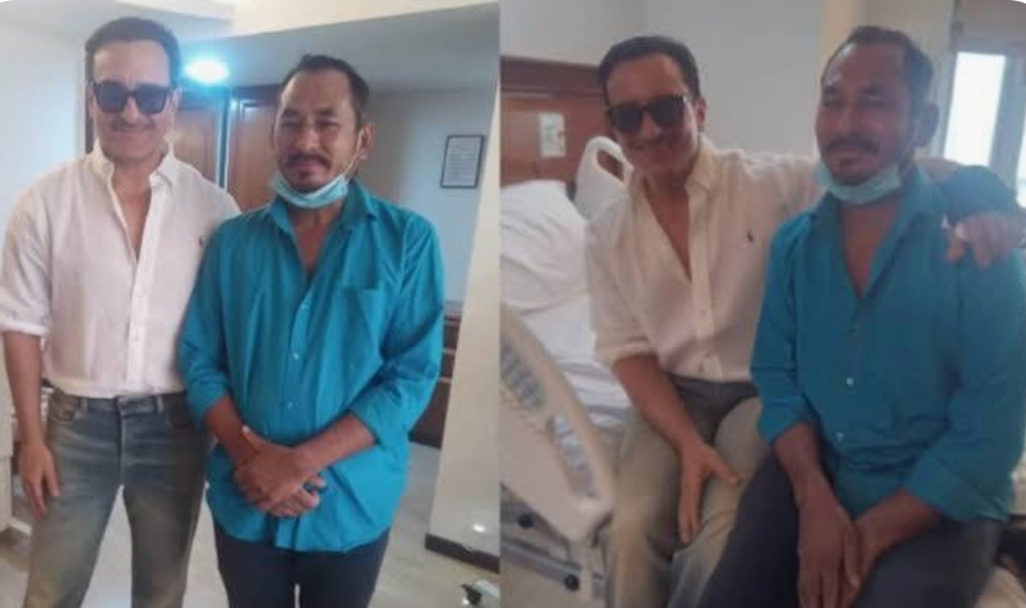 De acteur ontmoette Rana in het ziekenhuis van Lilavati voordat hij op 21 januari werd ontslagen. Op de foto’s is Saif Ali Khan lachend te zien terwijl hij naast meneer Rana staat. De acteur is te zien terwijl hij zijn handen op zijn schouder legt en poseert voor de camera.