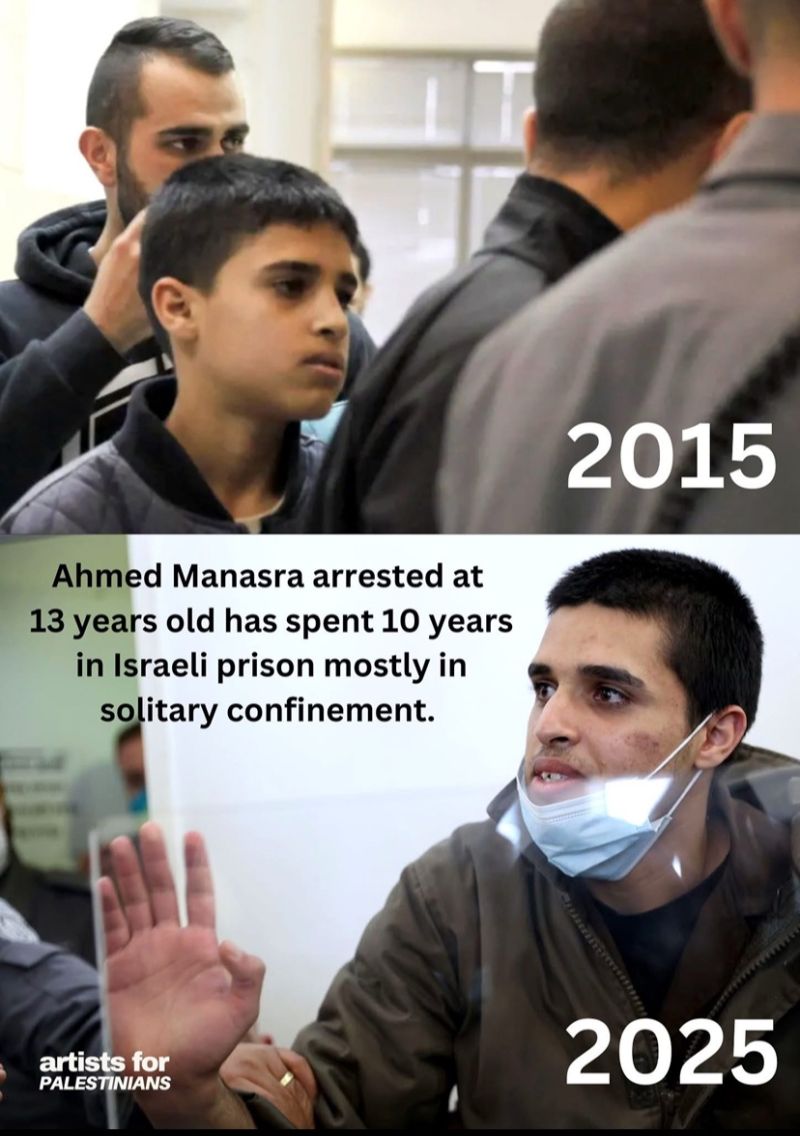 De jonge Ahmad Manasra, die als 13-jarig kind door apartheid-Israël werd ontvoerd en gemarteld, zal naar verwachting vandaag worden vrijgelaten na 10 jaar in Israëlische apartheid-martelgevangenissen, voornamelijk in eenzame opsluiting. Ahmed zal worden vrijgelaten als onderdeel van de gijzelaarsruildeal tussen GAZA en apartheid-Israël. (Al Mayadeen)