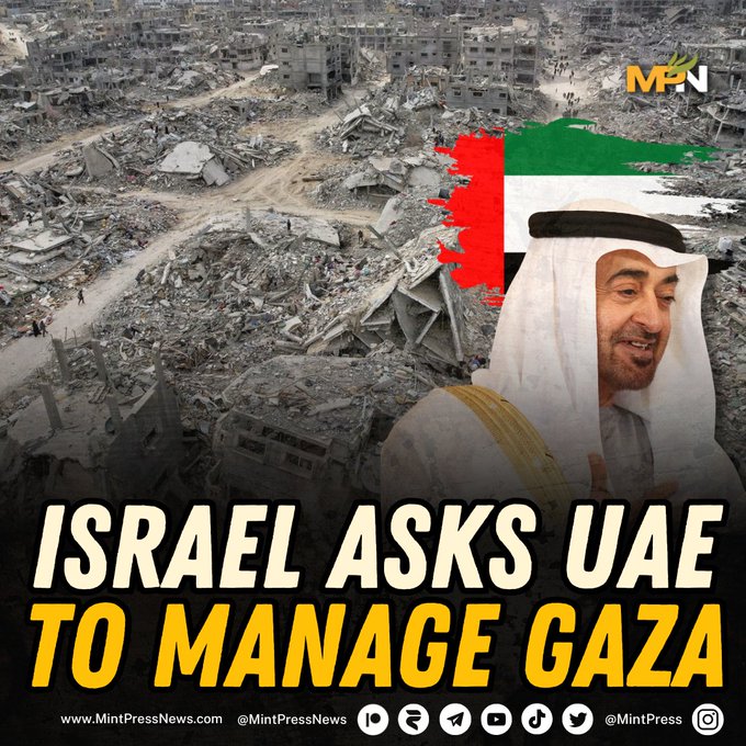 Volgens een rapport van Israel Hayom zijn de Verenigde Arabische Emiraten en Israël overeengekomen dat het Golfemiraat het beheer van de Gazastrook overneemt na de genocide.