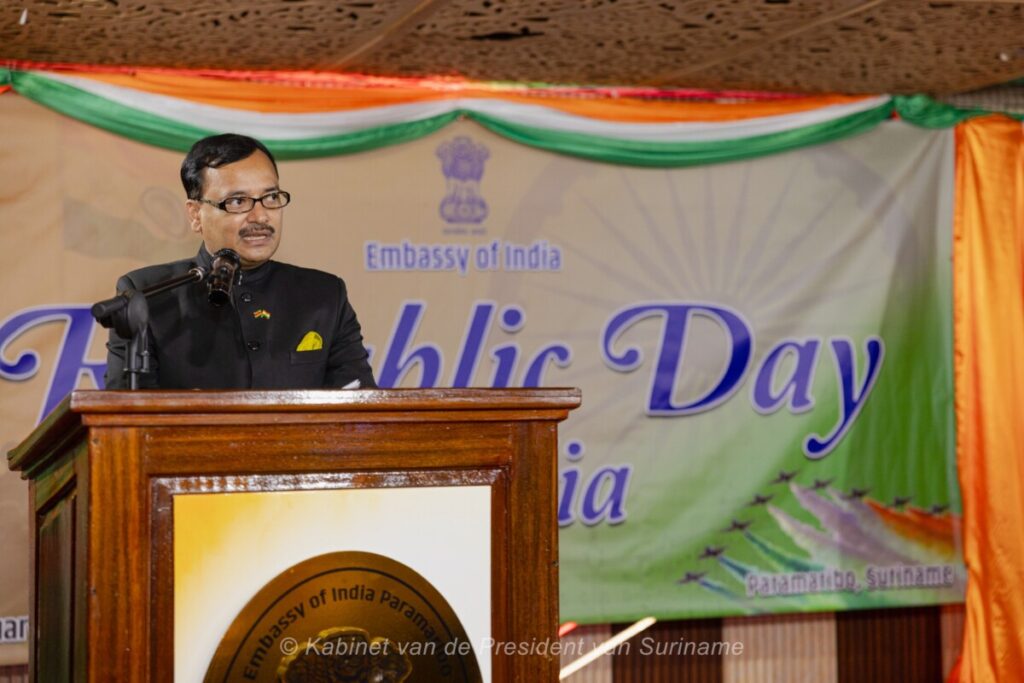 De 76ste Republiekdag van India werd op zondag 26 januari feestelijk herdacht in Maharadja Palace. De nationale dag markeert de historische inwerkingtreding van de Indiase Grondwet in 1950, waarmee India zich officieel vestigde als een soevereine democratische republiek. De viering werd bijgewoond door president Chandrikapersad Santokhi die, evenals de Indiase ambassadeur, Subhash Gupta, het publiek toesprak. In hun toespraken benadrukten beide sprekers de diepe historische banden tussen Suriname en India. Daarnaast onderstreepten zij het belang van verdere samenwerking om de relatie tussen de twee naties verder te versterken.