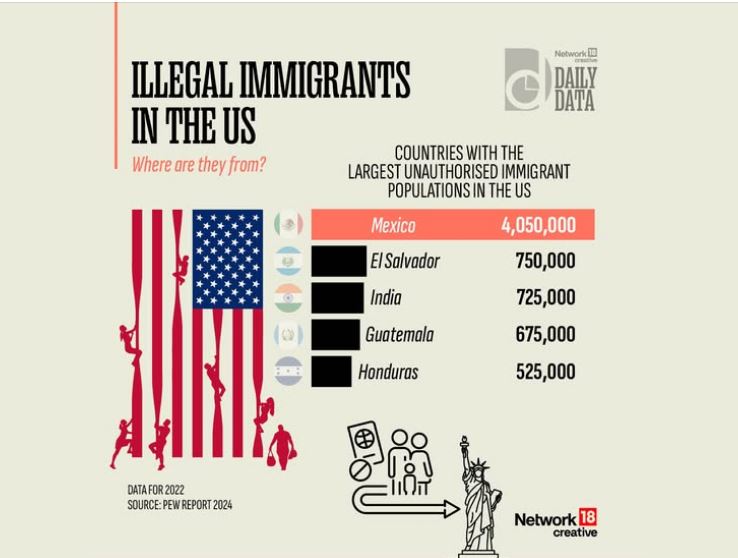 Uit een recent rapport blijkt dat Mexico met 4.050.000 het grootste aantal illegale immigranten in de VS heeft.