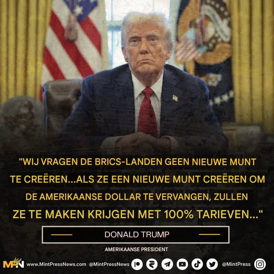 President Trump dreigt met tarieven tegen BRICS-landen als ze proberen de Amerikaanse dollar te vervangen