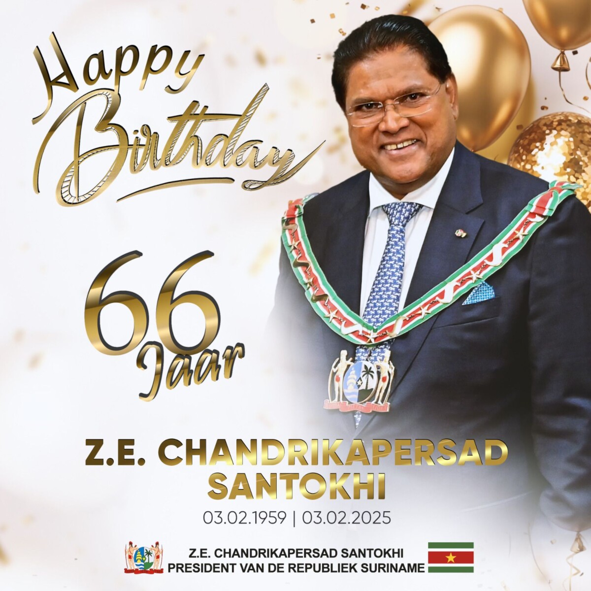 President Chandrikapersad Santokhi viert vandaag, maandag 3 februari, zijn 66e verjaardag. Deze dag worden diverse projecten opgeleverd of gestart.