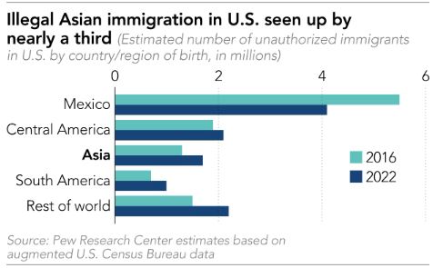 Naar schatting leefden er in 2022 1,7 miljoen Aziaten zonder vergunning in de VS, een derde meer dan in 2016