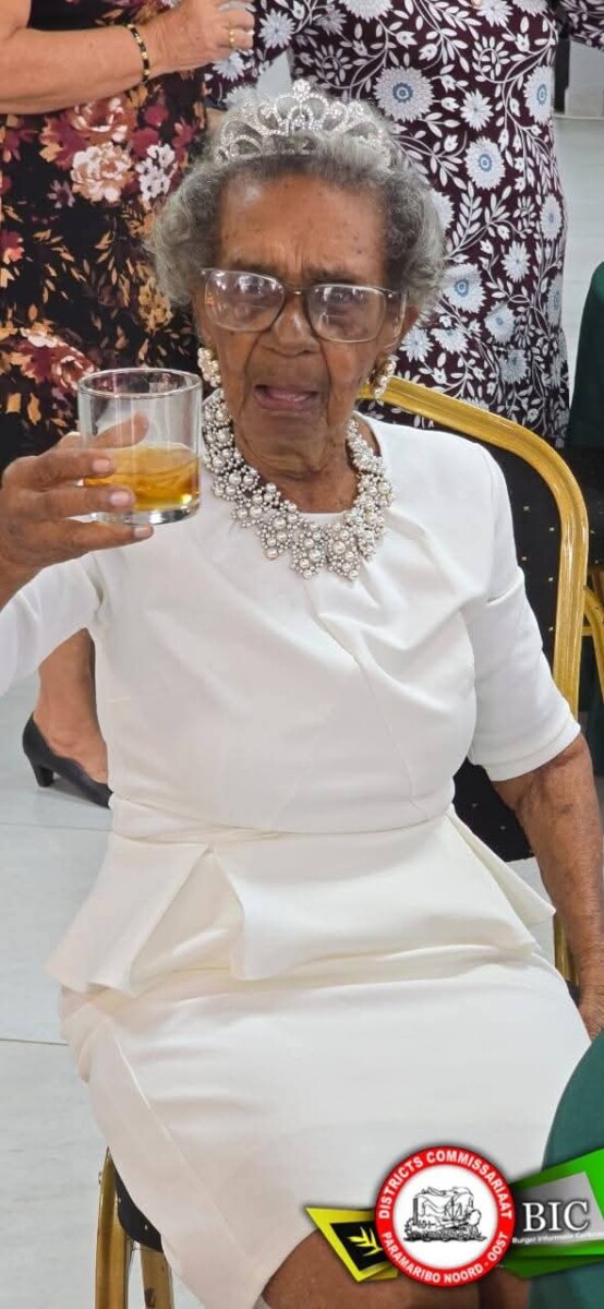 Uit handen van adjunct districtssecretaris Blackson Chanice mocht de jarige een enveloppe en verjaardagscertificaat in ontvangst nemen, namens het districtscommissariaat Paramaribo Noord-Oost, aldus het Burger Informatie Centrum Paramaribo Noord-Oost.