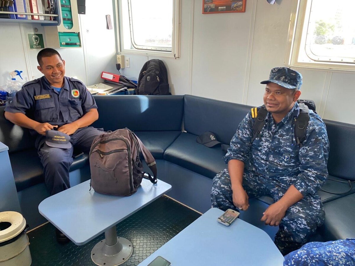 Als waarnemers bij de training en toetsing van meerdere maritieme eenheden keken de twee Surinamers mee bij trainingen van bemanningen van Zr.Ms. Pelikaan, KWCARIB cutter JAGUAR en meerdere KWCARIB Metal Sharks vaartuigen.