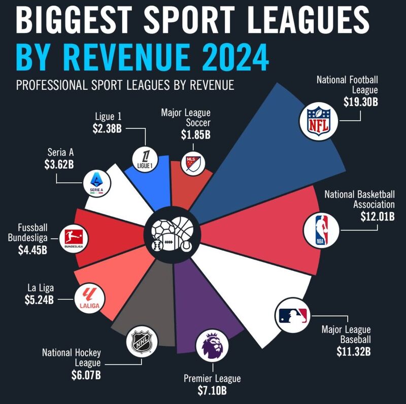 De National Football League (NFL) voert de lijst aan van meest winstgevende sportcompetities in 2024, met een omzet van 19,30miljard.DePremierLeaguevolgtmet19,30miljard.DePremierLeaguevolgtmet7,10 miljard, terwijl de National Basketball Association (NBA) 12,01miljardgenereert.Anderetopliga′szoalsMajorLeagueBaseball(12,01miljardgenereert.Anderetopliga′szoalsMajorLeagueBaseball(11,32 miljard) en de Bundesliga ($4,45 miljard) tonen de enorme financiële impact van sport wereldwijd.