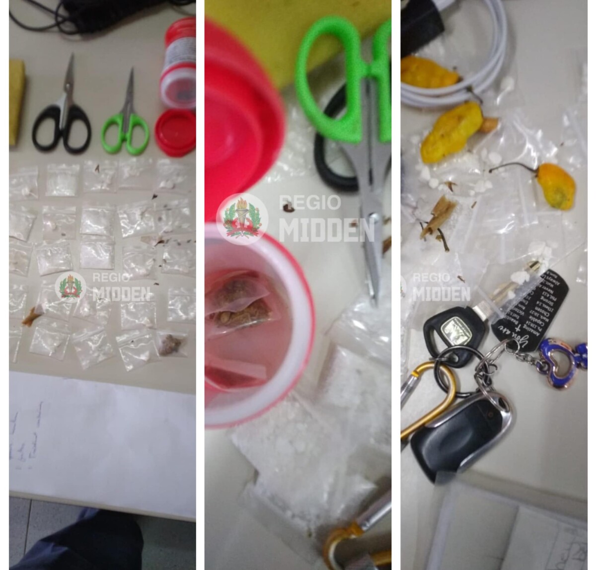 De man had twee mannelijke passagiers in zijn auto. Een van hen, die een tas bij zich droeg, begon zich verdacht te gedragen. Naar aanleiding hiervan stelde de politie een nader onderzoek in en trof in zijn tas een zakje met een witte substantie aan, vermoedelijk cocaïne, met een gewicht van 17 gram. Daarnaast werden in een kauwgom blikje drie zakjes met gedroogde bladeren aangetroffen, die op marihuana leken, evenals 30 ziplock zakjes. De vermoedelijke drugs werden in beslag genomen voor verder onderzoek.