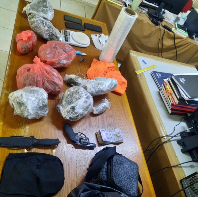 Bij een onderzoek in de woning waarin de Guyanesen zich bevonden, werden 3.350 gram marihuana en een revolver en 5 scherpe patronen aangetroffen. Aangezien er geen vuurwapenvergunning kon worden overlegd werden beide mannen aangehouden ter zake overtreding van de Wet Verdovende Middelen en de Vuurwapenwet.