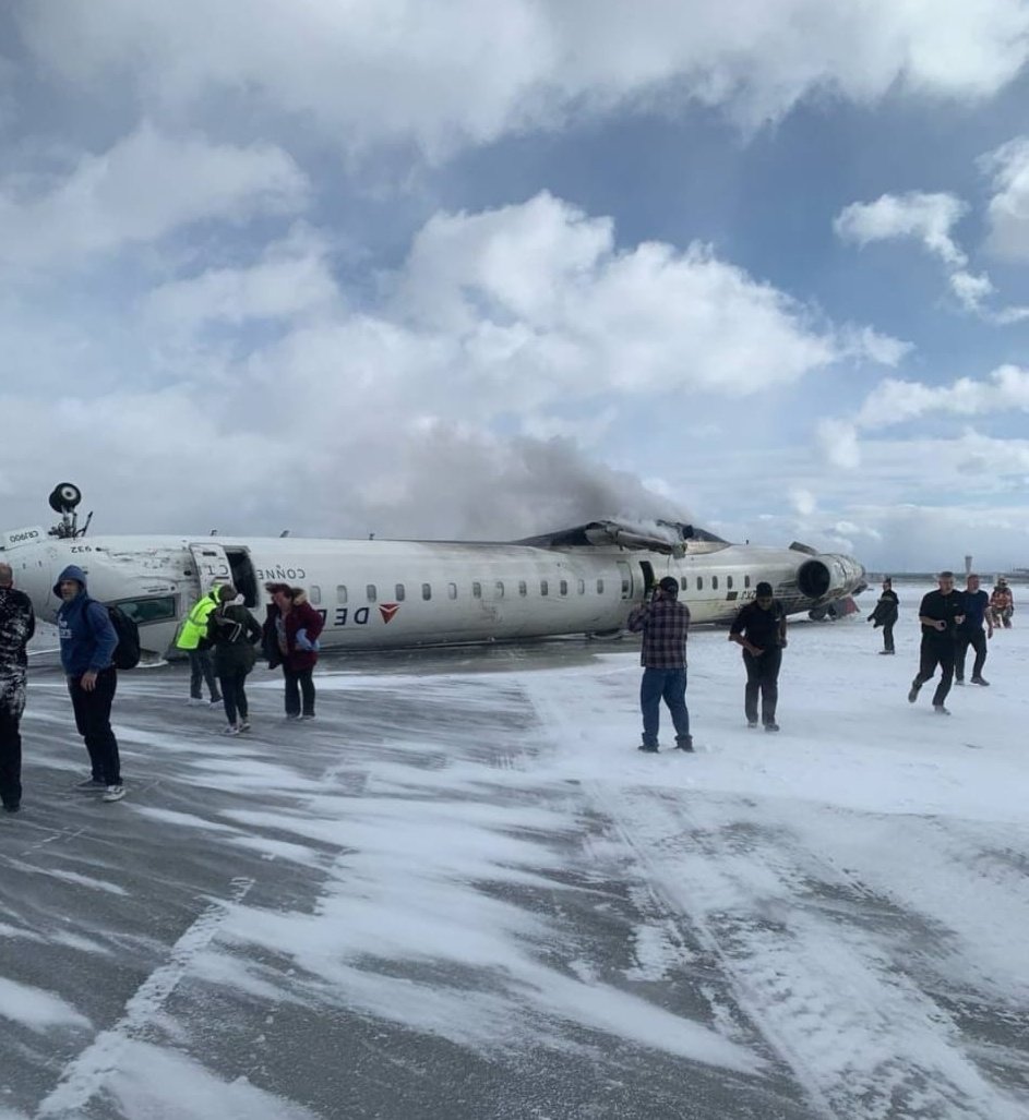 Een toestel van Delta Airlines is maandag op het Toronto Pearson International Airport op zijn kop geland. Dat er geen doden zijn gevallen, mag een wonder heten.