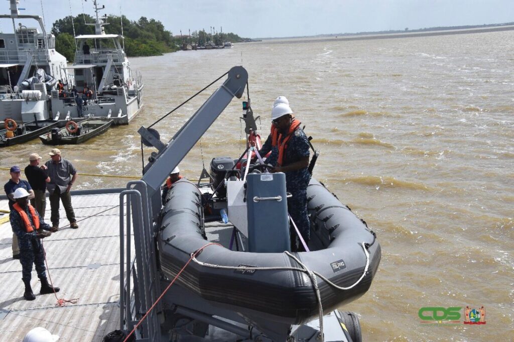 De gasten gingen aan boord bij de steiger van de Maritieme Autoriteit Suriname (MAS), waarna ze vertrokken voor een demonstratievaart. Gedurende de vaart werden verschillende oefeningen uitgevoerd, waaronder brandbestrijding en het gebruik van waterkanonnen.