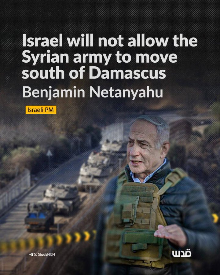 Israëlische premier Benjamin Netanyahu heeft verklaard dat het nieuw opgerichte Syrische leger niet wordt toegestaan het gebied ten zuiden van Damascus te betreden. Hij benadrukte dat het Israëlische leger zijn aanwezigheid op de berg Hermon en in de bufferzone op de bezette Golanhoogten zal handhaven. Deze verklaring volgt op een recente Israëlische militaire inval in de bufferzone, die in strijd is met de wapenstilstandsovereenkomst uit 1974 tussen Israël en Syrië.