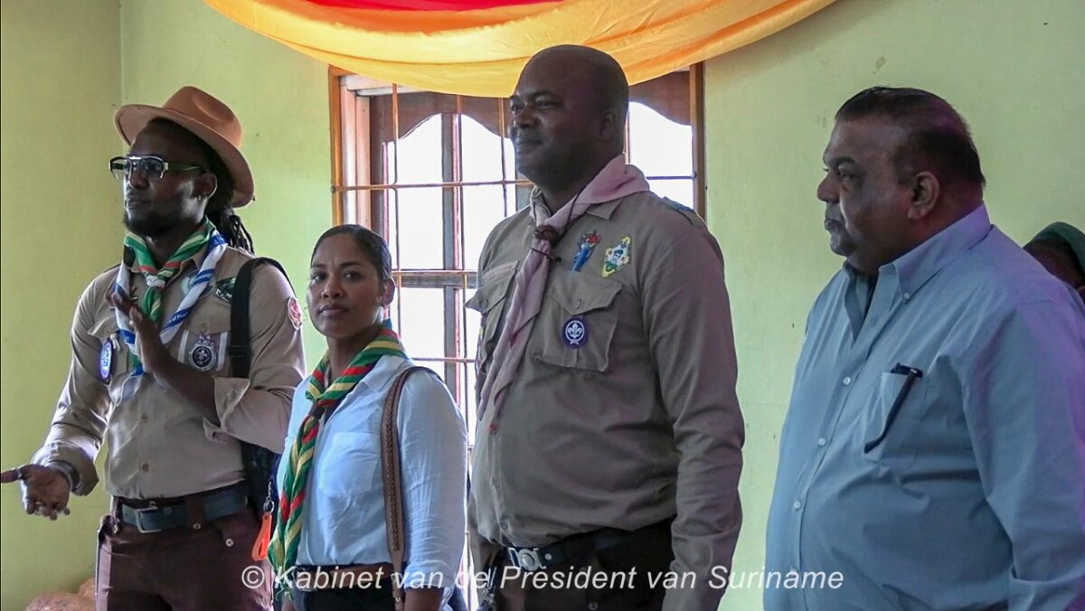 President Chandrikapersad Santokhi, als Chief Scout, overhandigde certificaten en medailles voor 40, 50 en 60 jaar dienst.