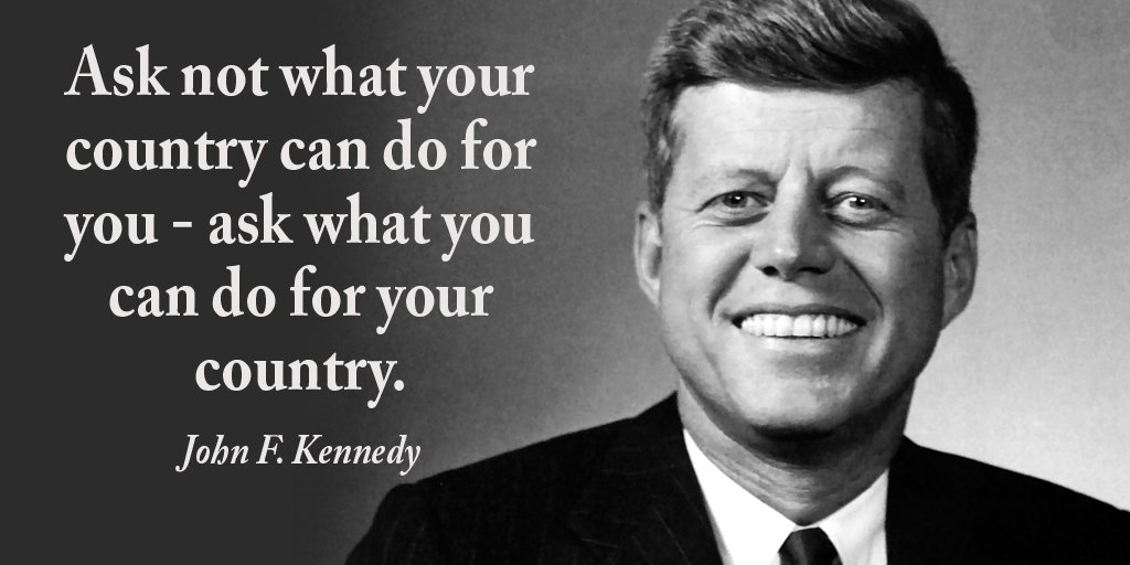 “Ask not what your country can do for you; ask what you can do for your country.” (John F. Kennedy)