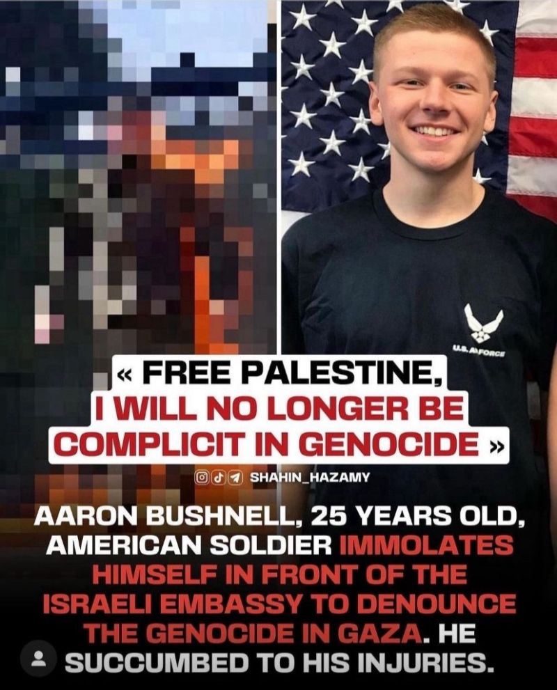 Bushnell is niet de eerste die zichzelf opoffert uit protest tegen het Amerikaanse beleid in Gaza. In december 2023 deed een activist hetzelfde bij het Israëlische consulaat in Atlanta. Toch lijkt de wereld ongevoelig voor deze extreme vormen van protest. Waarom zijn er geen massale reacties? Hoeveel Aarons moeten er nog sterven voordat de wereld wakker wordt? 10? 100? 1000?