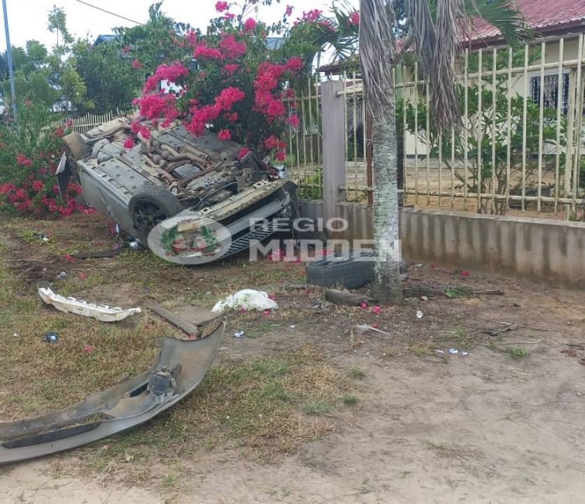 Bij een eenzijdig verkeersongeval woensdag op de Rahemalweg, Houttuin, is een auto op z’n kop beland.