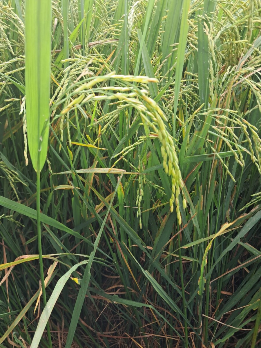 De proef padieaanplant in de omgeving Moengo in het district Marowijne is de oogstrijpe fase ingetreden. Naar verwachting zal binnen twee weken overgegaan kunnen worden tot oogsten. De aanplant met volle groen-geelachtige rijsthalmen staat er heel goed bij in het veld. Nu al kan gesteld worden dat de proef padieaanplant van circa 1/800 hectare een succes is geworden.