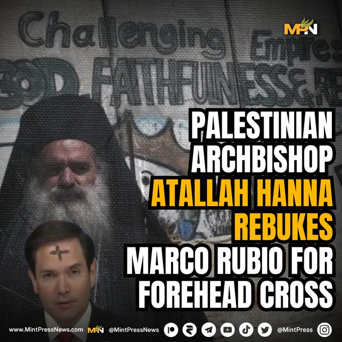 De Palestijnse aartsbisschop Atallah Hanna bekritiseerde de Amerikaanse minister van Buitenlandse Zaken Marco Rubio omdat hij op Aswoensdag in het openbaar verscheen met een kruis op zijn voorhoofd.