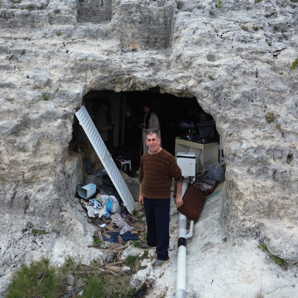 Hatay'da bir vatandaş, 6 Şubat depremlerinden sonra mağarada yaşamaya başladı.