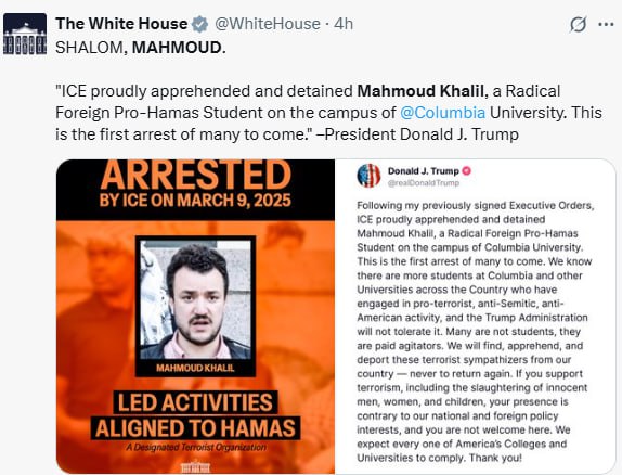 Judge blocks pro-Palestine protest leader Mahmoud Khalil’s deportation from US Geplaatst op maart 10, 2025maart 10, 2025 Earlier, Trump praised his judgment with ‘SHALOM, MAHMOUD’ WH post Bericht navigatie VorigeWat zijn de Belt and Road Main Corridors?Volgende3 doden nadat medische helikopter met ziekenhuismedewerkers neerstort nabij Jackson, Mississippi
