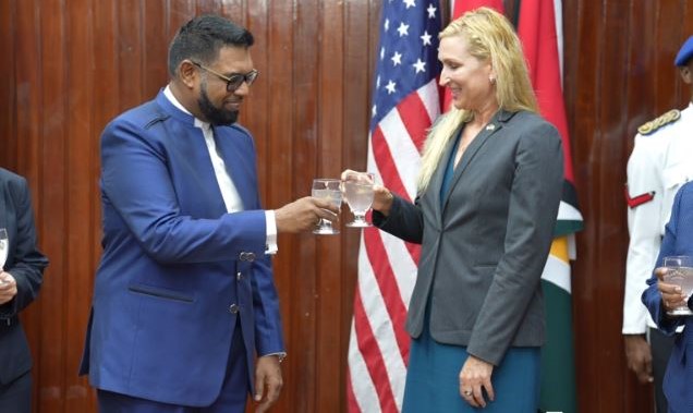 De Amerikaanse ambassadeur in Guyana, Nicole Theriot, heeft donderdag de onvoorwaardelijke steun van de Verenigde Staten aan Guyana bevestigd na een recente inval van de Venezolaanse marine en aanhoudende agressie tegen de Essequibo-regio. Theriot benadrukte dat de VS Guyana “100 procent steunt” tegen wat zij omschreef als onacceptabele bedreigingen van Venezolaanse zijde.