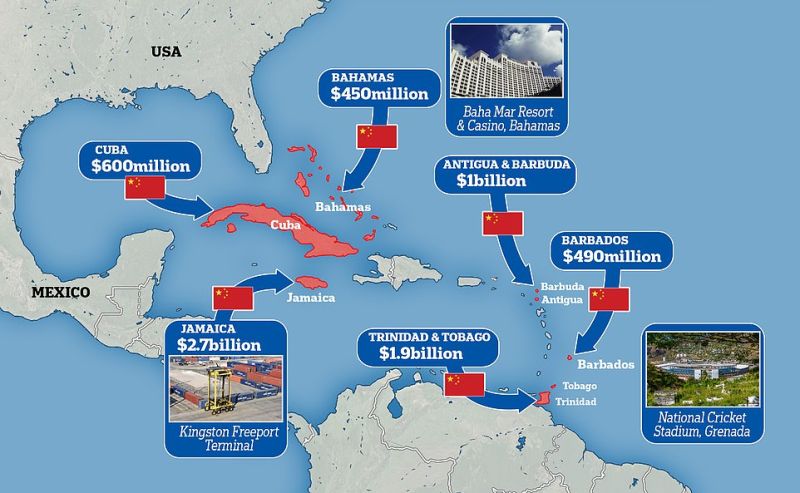 Sinds 2002 is de handel tussen China en het Caribisch gebied gestegen van 1 miljard naar 8 miljard dollar in 2019.