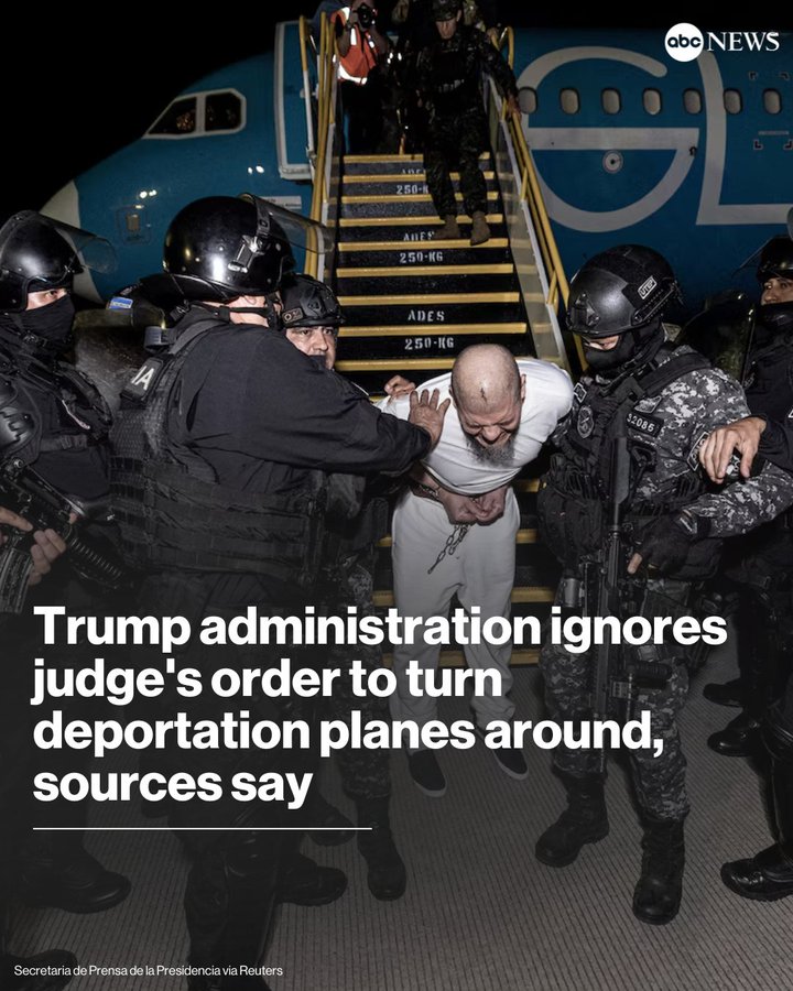 De regering van president Donald Trump heeft een weloverwogen besluit genomen om de opdracht van een rechter te negeren om twee vluchten met honderden vermeende Venezolaanse bendeleden om te leiden, zo vertelden bronnen die bekend zijn met de zaak aan ABC News.