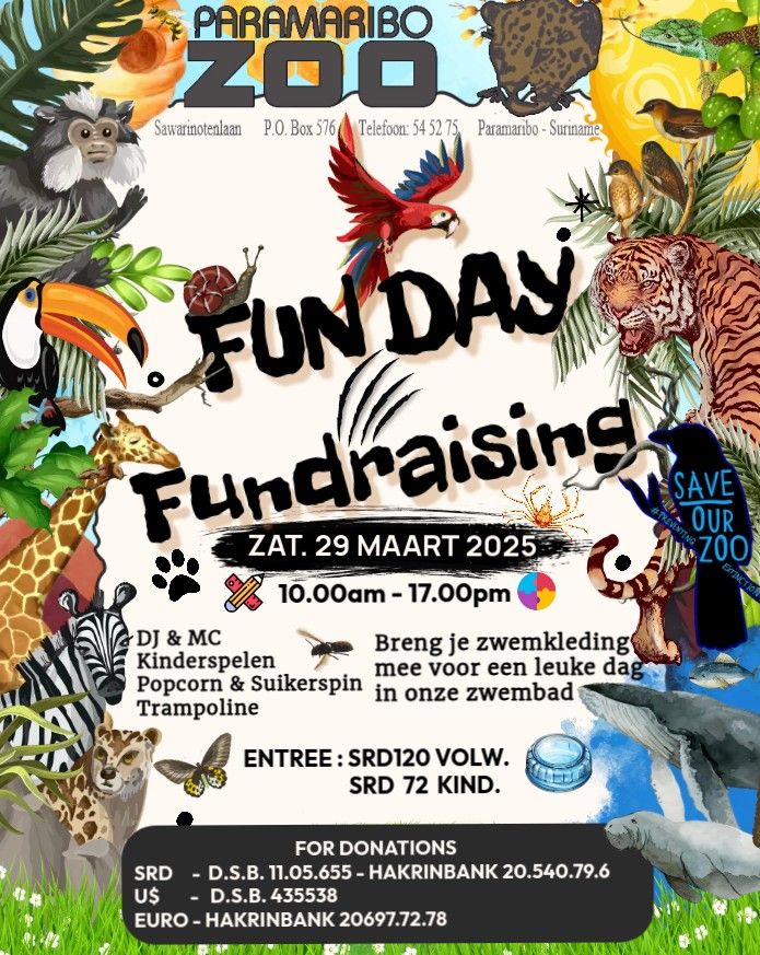 Binnenkort start de ZOO met een campagne ‘Save our Zoo’ waarvoor er al enkele brieven naar sponsors zijn gestuurd. Ook wordt op zaterdag 29 maart een Fun Day fundraising in de ZOO gehouden. Naast kinderspelen, en verschillende attracties is het ook mogelijk om in een zwembad te spelen.