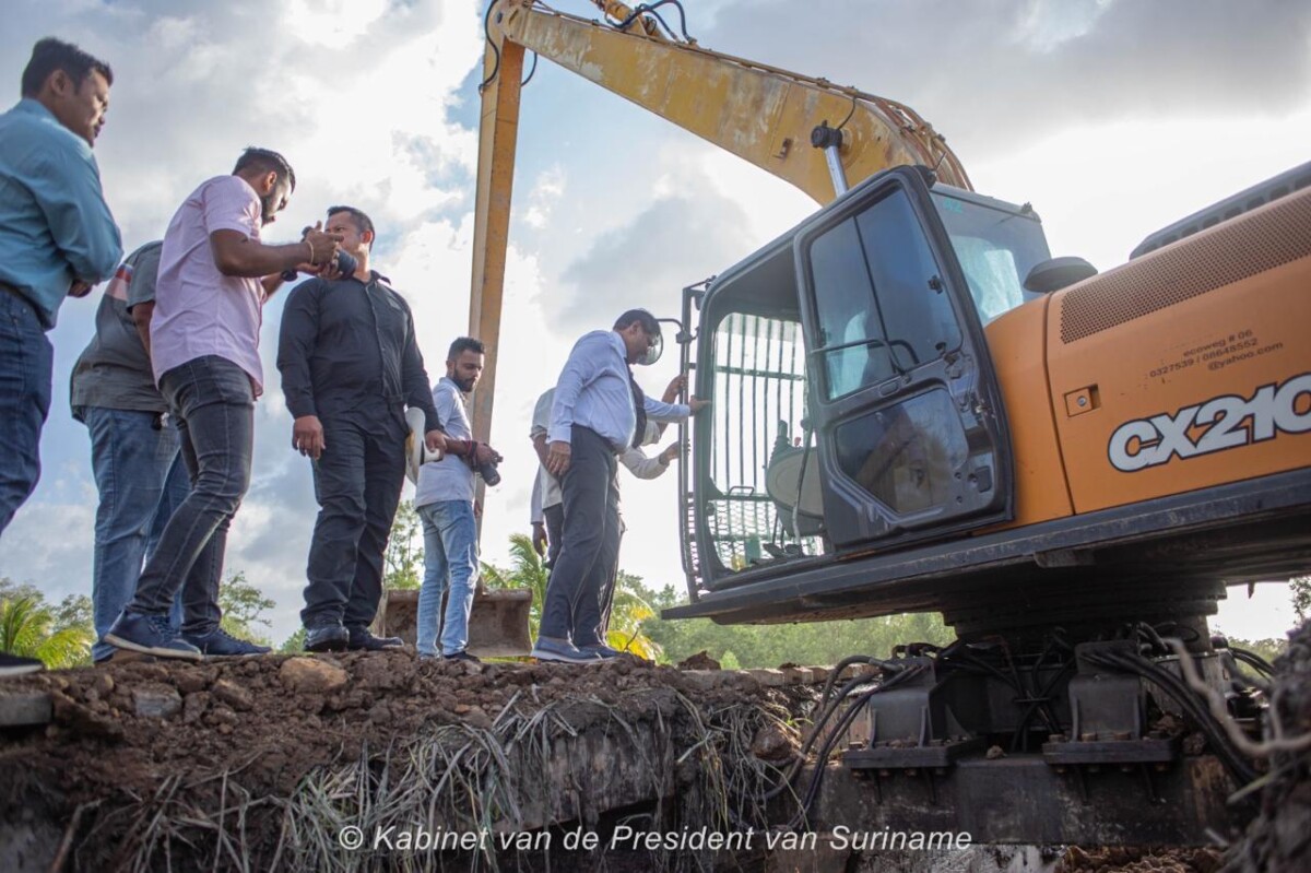 President Santokhi benadrukte het belang voor landbouw en cultuur, terwijl bewoners opluchting uiten na jaren van angst tijdens springtij. De dijk moet binnen 12 maanden klaar zijn.