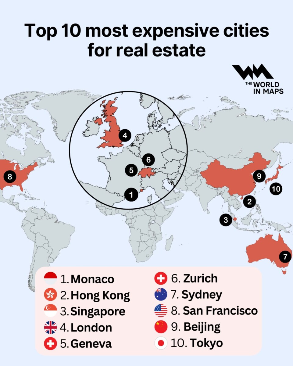 Monaco voert opnieuw de lijst aan als ’s werelds duurste stad voor vastgoed, waar $1 miljoen slechts 17 m² oplevert – nauwelijks groter dan een parkeerplaats. Het Knight Frank Wealth Report 2024 onthult dat exclusiviteit, belastingvoordelen en beperkte ruimte de prijzen in topsteden tot recordhoogtes drijven.