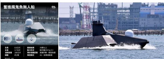Taiwan heeft zijn eerste onbemande oppervlaktevaartuig (USV), de “Endeavour Manta”, onthuld, speciaal ontworpen om in zwermformaties te opereren en Chinese oorlogsschepen aan te vallen. Het 8,6 meter lange en 3,7 meter brede vaartuig, gemaakt van vezelversterkt plastic, wordt aangedreven door twee buitenboordmotoren en kan een snelheid van 35 knopen bereiken. Met een laadvermogen van één ton kan het twee lichte torpedo’s vervoeren en is uitgerust met explosieven in de boeg voor ramming of zelfvernietiging.